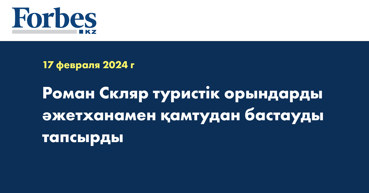 «Өңір әкімдіктеріне туристік нысандарды дамыту бойынша жол карталарын, сондай-ақ жауапты басшылар мен іске асыру мерзімін белгілеуді тапсырамын. Туристік объектілерді санитарлық-гигиеналық тораптардан бастап қалыпқа келтіріп, тиісті қаржыландыруды қамтамасыз етуді жүктеймін», - деді Роман Скляр елордада өткен Туризм және спорт министрлігінің кеңейтілген алқа отырысында.