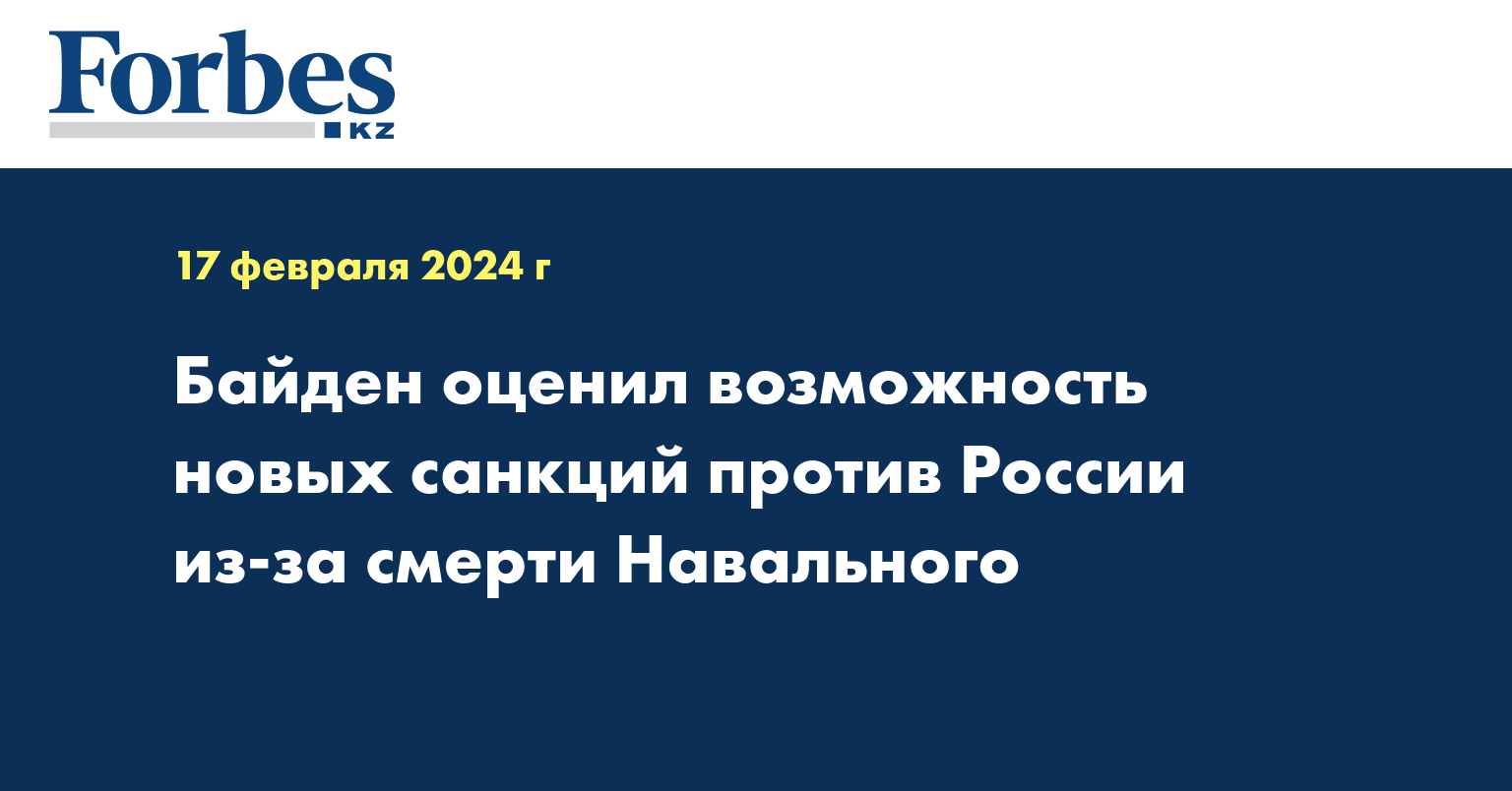 Президент США Джо Байден, выступая с речью в связи со смертью Алексея Навального, допустил ужесточение санкций против России. Трансляция обращения велась на YouTube-канале Белого дома. «Сейчас мы рассматриваем целый ряд вариантов», — заявил он журналистам. Байден не уточнил, о каких потенциальных мерах может идти речь, пишет Forbes.