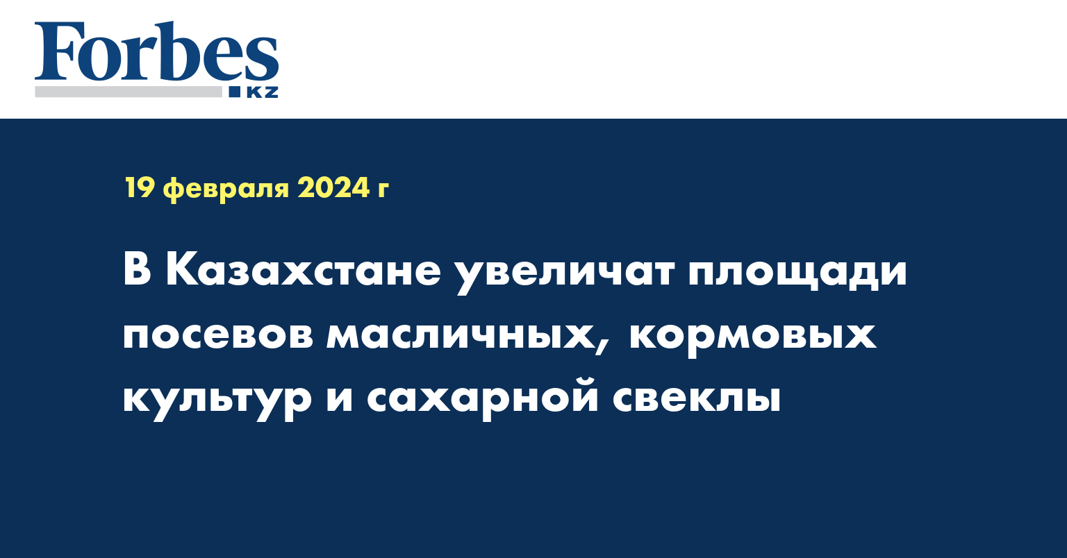 Вице-министр сельского хозяйства Азат Султанов отметил, что общая посевная площадь на сезон 2024 года составит 23,9 миллиона гектаров, что на 115,6 тысяч гектаров меньше, чем в предыдущем году. Планируется сократить посевы пшеницы (-439,2 тысячи гектаров) и ячменя (-129,5 тысяч гектаров), а также увеличить посевы масличных культур (на 414,7 тысяч гектаров) и кормовых культур (на 96,4 тысяч гектаров). Предполагается сокращение площадей, выделенных под такие влагоемкие культуры, как хлопчатник (-16 тысяч гектаров) и рис (-6,4 тысяч гектаров).