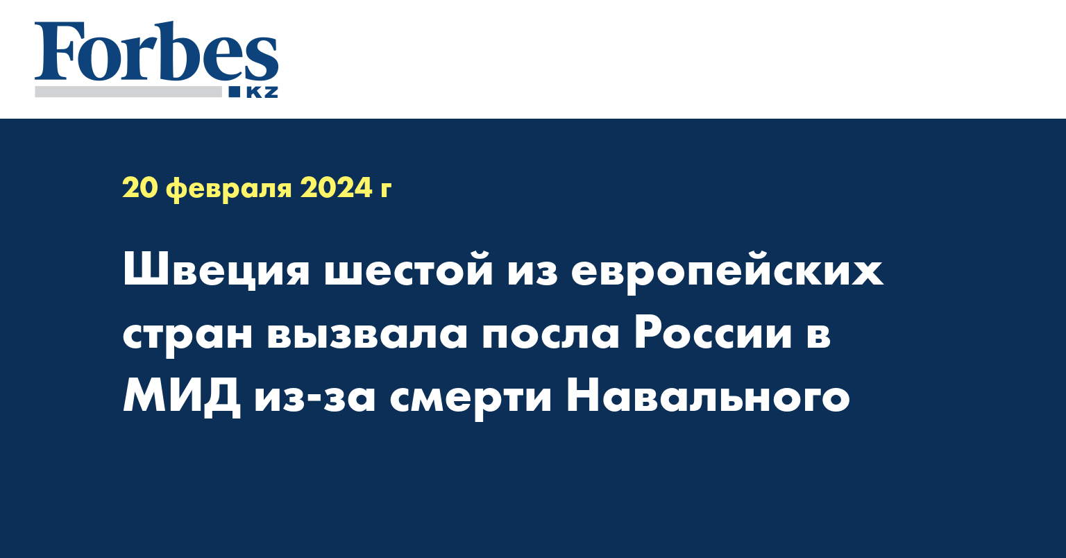 Министерство иностранных дел Швеции вызвало российского посла Виктора Татаринцева в связи со смертью Алексея Навального. Эту информацию сообщили в пресс-службе внешнеполитического ведомства страны в X. Подробности по данному вопросу не предоставляются, а в российском посольстве эти события пока не прокомментировали.