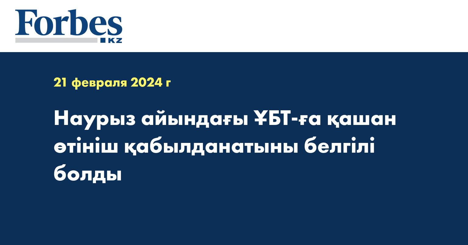 Наурыз айында өтетін ҰБТ-ға қатысу үшін өтініш қабылдау 27 ақпанда басталып, 10 наурызға дейін жалғасады. Бұл туралы Ғылым және жоғары білім министрлігінің баспасөз қызметі хабарлады.