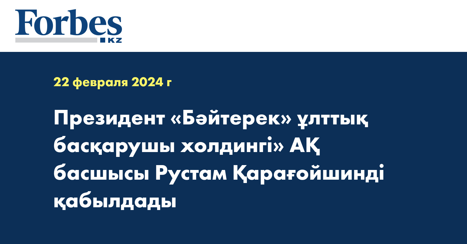Президент «Бәйтерек» ұлттық басқарушы холдингі» АҚ басшысы Рустам Қарағойшинді қабылдады, деп хабарлайды Ақорданың баспасөз қызметі.