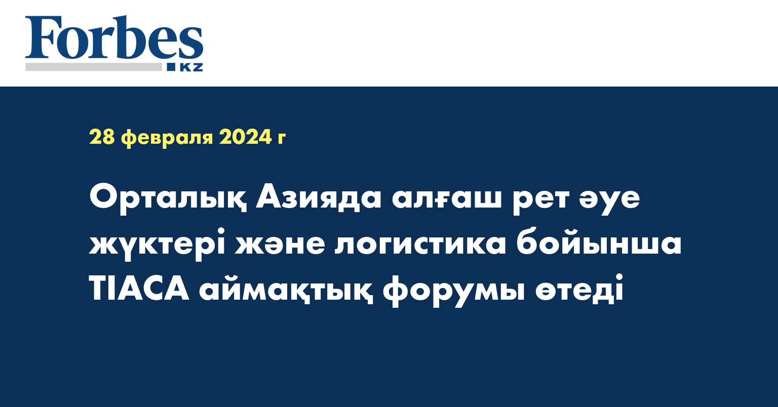 2024 жылғы 19-21 маусым аралығында Қазақстан Республикасында алғаш рет әуе жүктері және логистика бойынша аймақтық форум өтеді, ол Қазақстан Республикасы Көлік министрлігі мен Азаматтық авиация комитетінің, Халықаралық жүк әуе тасымалдары қауымдастығының (TIACA) қолдауымен өтеді. Іс-шараны Қазақстанның авиациялық әкімшілігі бірлесіп ұйымдастырады.