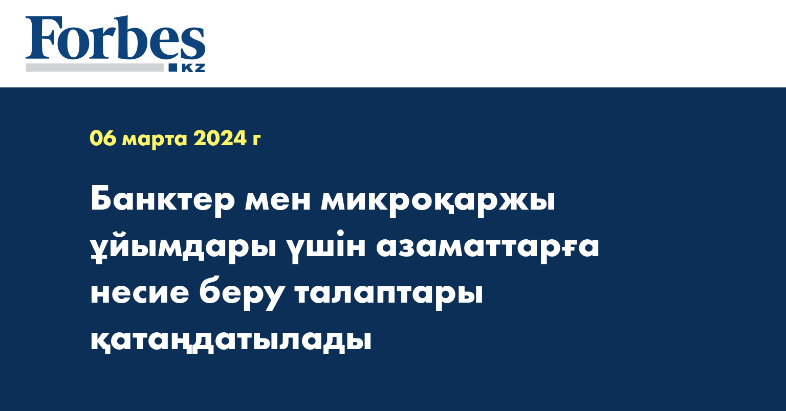 Құжатқа қарыз алушының несие бойынша ай сайынғы төлемінің ресми табысының жартысынан аспауы туралы талап енгізілген. Оны банктер мен микроқаржы ұйымдары сақтауға міндетті болады. Бұдан бөлек тұтынушылық кредит ұғымы енгізіледі және нормативтік деңгейде оның ең жоғары мәні шектеледі (банктер үшін – 5 млн теңге, микроқаржы ұйымдары үшін – 2 млн теңге).