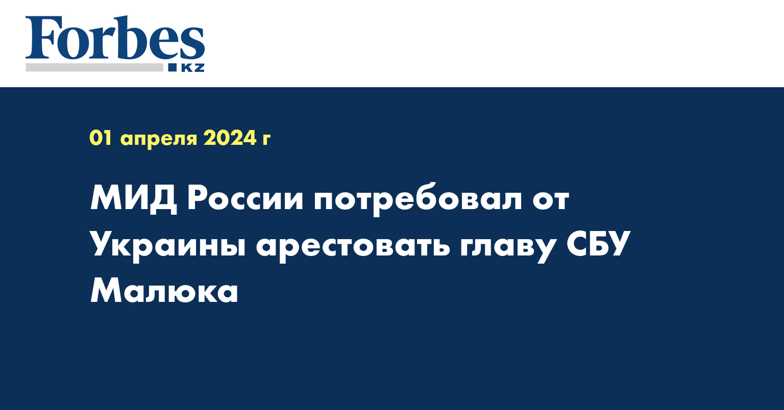 МИД России потребовал от властей Украины арестовать главу службы безопасности Украины (СБУ) Василия Малюка, пишет Forbes ссылаясь на заявление внешнеполитического ведомства. «В числе этих требований — арест главы СБУ В. Малюка, цинично признавшего 25 марта организацию Украиной подрыва Крымского моста в октябре 2022 года и раскрывшего детали организации других терактов в Российской Федерации», — сказано в сообщении МИД России.